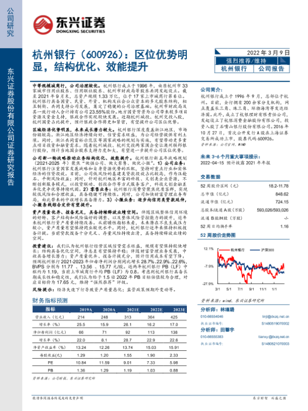 【东兴证券】【20220309】杭州银行(600926):区位优势明显,结构优化、效能提升-21页 行业研究