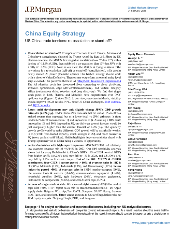 【J.P. Morgan】【20250204】gan-China Equity Strategy US-China trade tensions re-escalation-16页 宏观策略
