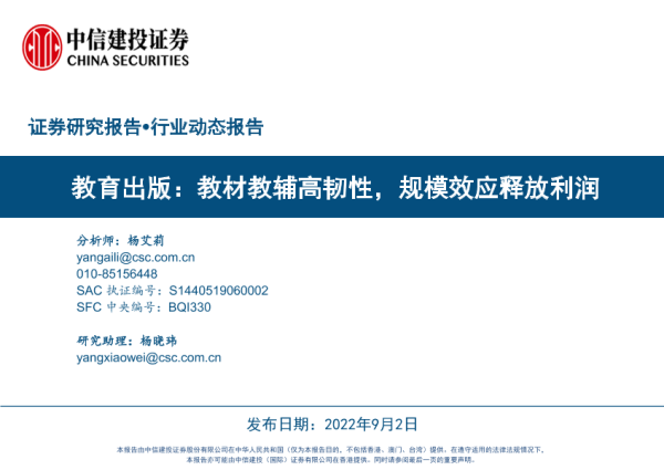 【中信建投证券】【20220902】教育出版,教材教辅高韧性,规模效应释放利润-35页 行业研究