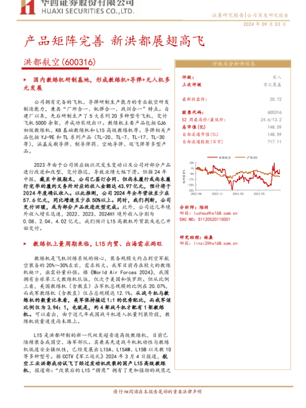【华西证券】【20240903】洪都航空(600316)产品矩阵完善,新洪都展翅高飞-27页 行业研究