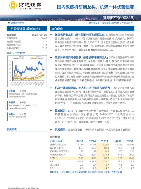 【财通证券】【202509】国内教练机研制龙头,机弹一体优势显著-21页 证券期货研究报告