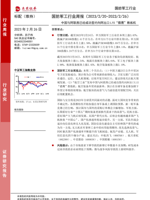 【东莞证券】【20230226】国防军工行业周报:中国与阿联酋已经成功签约向阿出口L15“猎鹰”教练机-11页 行业研究