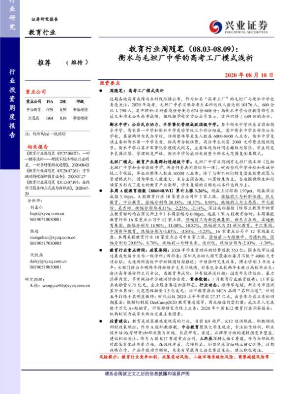 【兴业证券】【20200810】教育行业周随笔:衡水与毛坦厂中学的高考工厂模式浅析-17页 行业研究