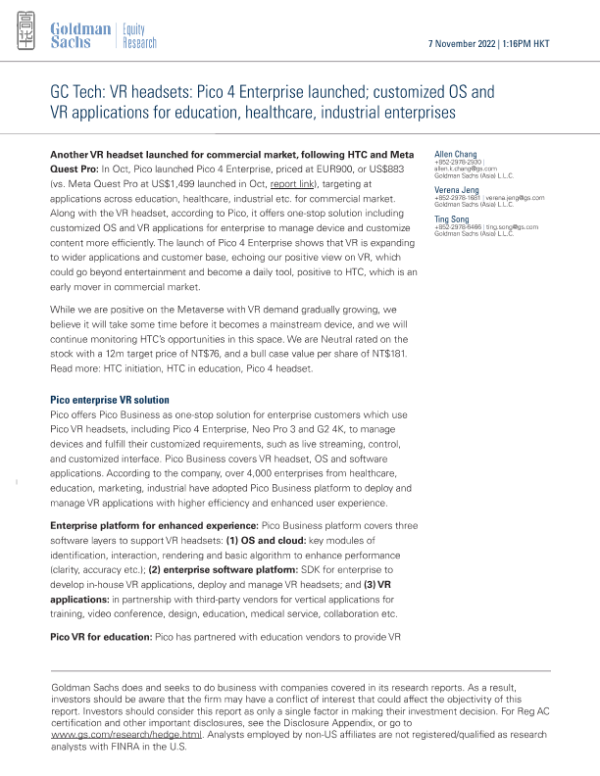 【Goldman Sachs】【20221107】mized OS and VR applications for education, healthcare, industrial enterprises-8页 行业研究