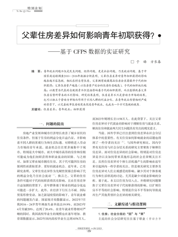 【中国青年研究】【202308】父辈住房差异如何影响青年初职获得?-9页 行业研究