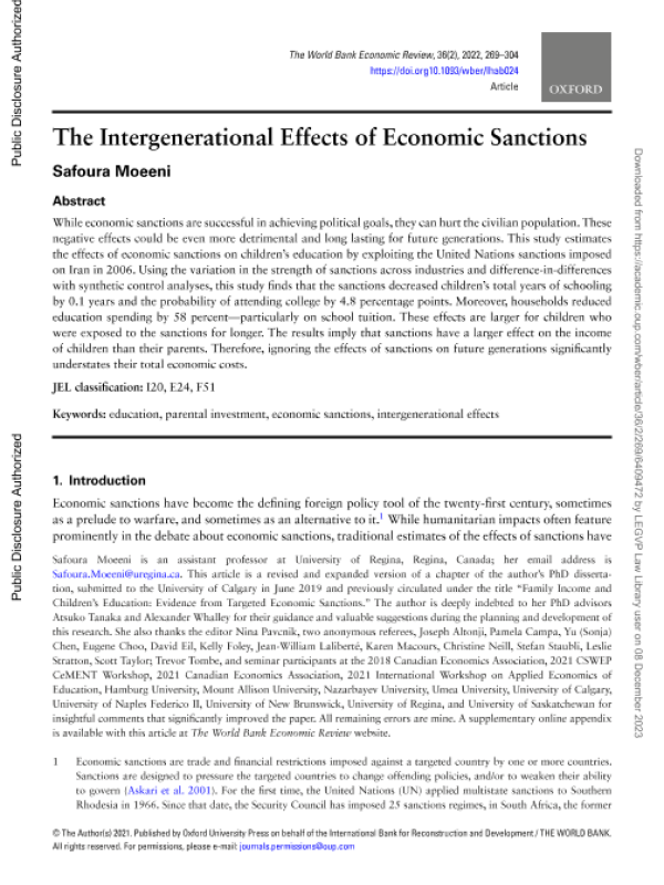 【The World Bank】【2022】The Intergenerational Effects of Economic Sanctions-36页 学术论文