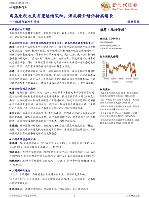 【新时代证券】【20200329】社服行业研究周报:离岛免税政策有望继续宽松,海底捞业绩保持高增长-23页 行业研究