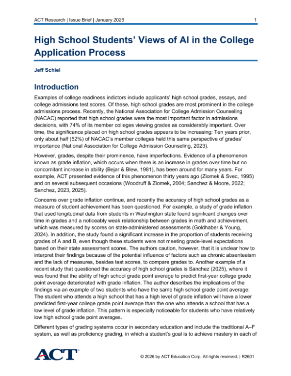 【ACT Education Corp.】【202601】High School Students’ Views of AI in the College Application Process-15页 市场调研