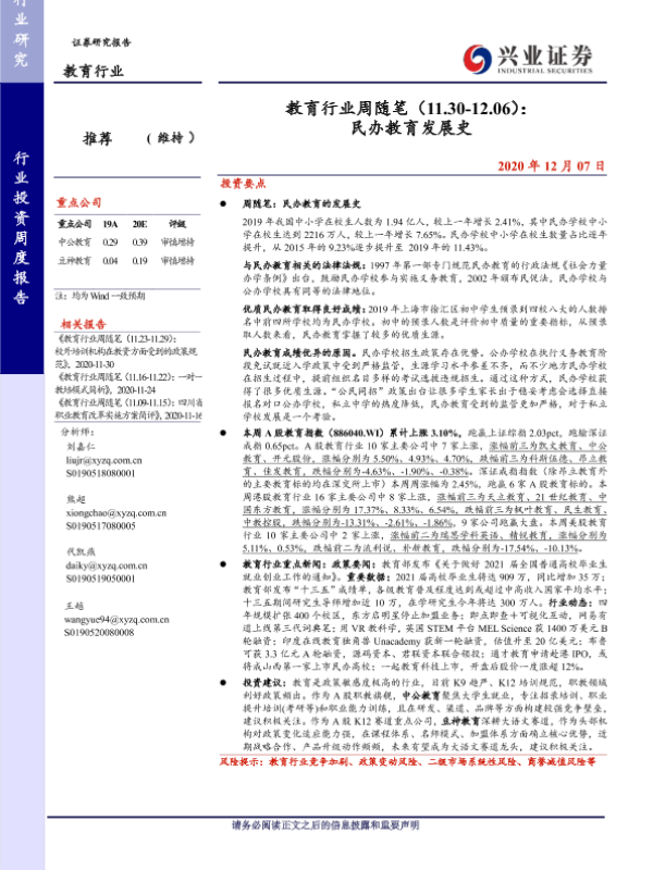 【兴业证券】【20201207】教育行业周随笔(11.30-12.06): 民办教育发展史-17页 行业研究