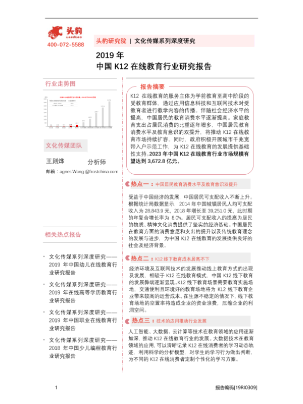 【头豹研究院】【2019】2019年中国K12在线教育行业研究报告-34页 行业研究