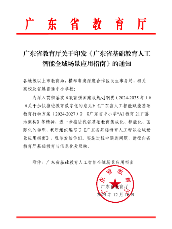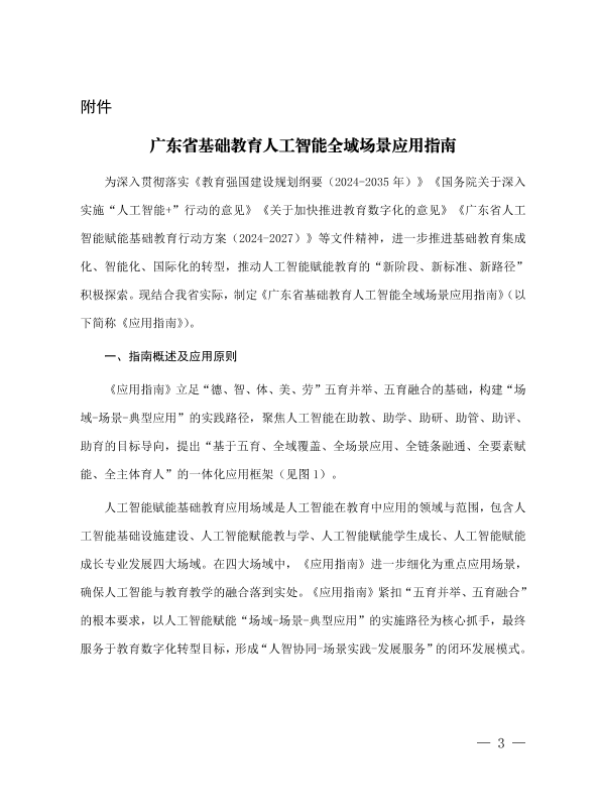 【广东省教育厅】【2025】广东省基础教育人工智能全域场景应用指南-54页 指南