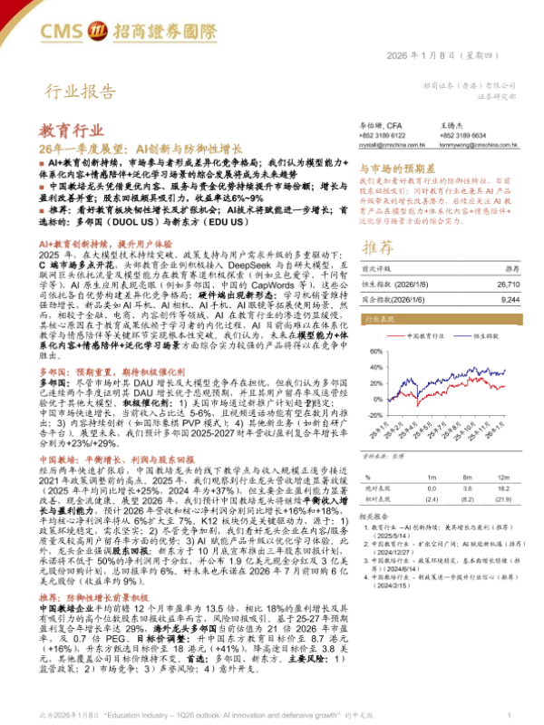 【招商证券国际】【202601】教育行业 – 1Q26 outlook AI innovation and defensive growth-30页 证券期货研究报告