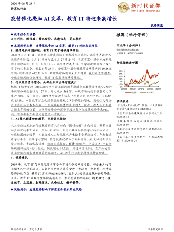 【新时代证券】【20200628】疫情催化叠加AI变革,教育IT将迎来高增长-31页 行业研究