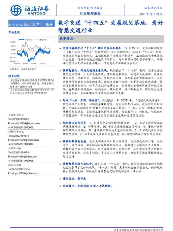 【海通证券】【20211224】信息服务行业跟踪报告:数字交通“十四五”发展规划落地,看好智慧交通行业-2页 行业研究