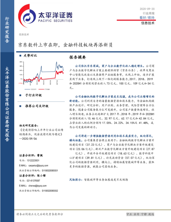 【太平洋证券】【20200920】20200920-太平洋-信息技术行业周报:京东数科上市在即,金融科技板块再添新员-17页 行业研究