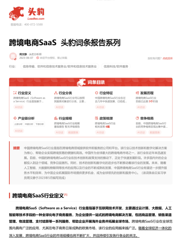 【头豹研究院】【20230915】跨境电商SaaS 头豹词条报告系列-20页 行业研究