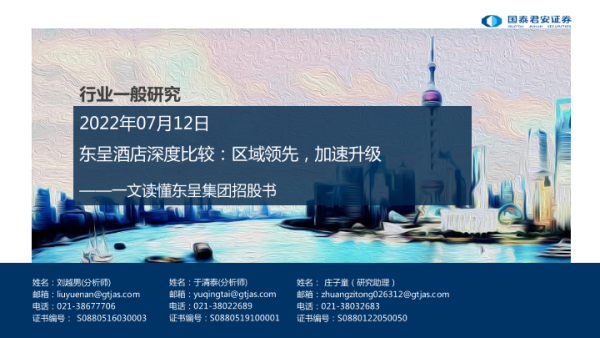 【国泰君安证券】【20220712】社服行业一文读懂东呈集团招股书:东呈酒店深度比较,区域领先,加速升级-38页 行业研究