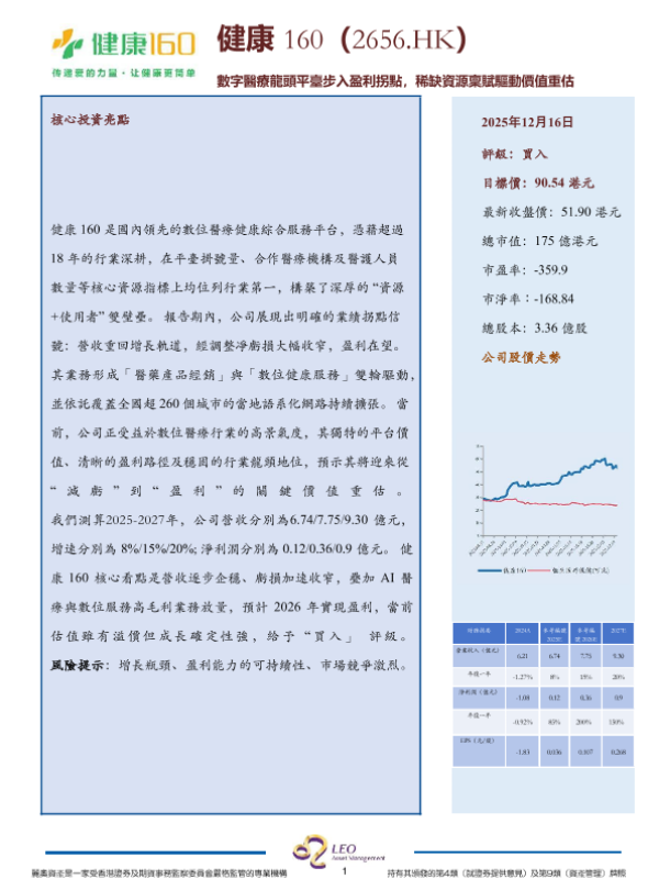 【丽奥资产管理】【202512】健康160-数字医疗龙头平台步入盈利拐点_稀缺资源禀赋驱动价值重估-19页 证券期货研究报告