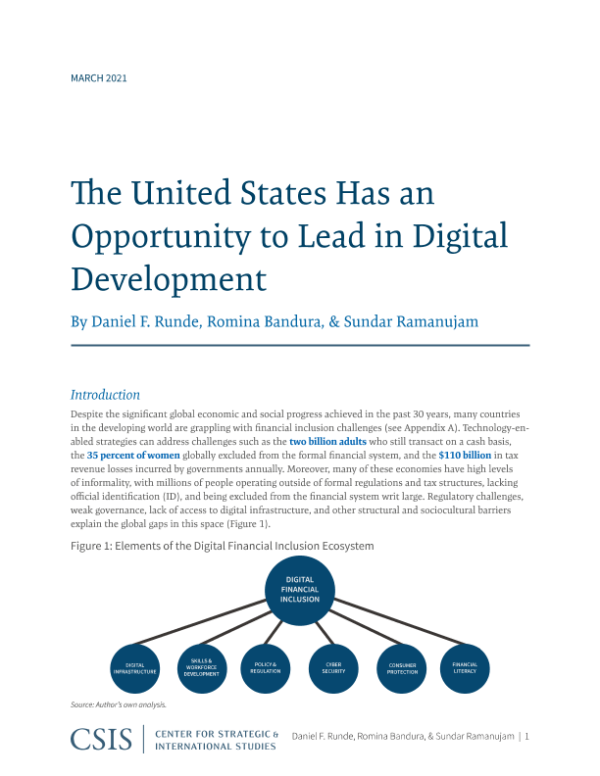 【Center for Strategic and International Studies (CSIS)】【202103】The United States Has an Opportunity to Lead in Digital Development-15页 行业研究