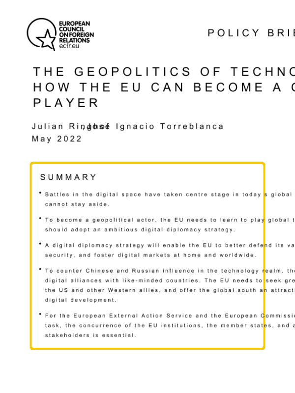 【欧洲对外关系委员会】【202205】技术地缘政治:欧盟如何成为全球参与者-37页 行业研究