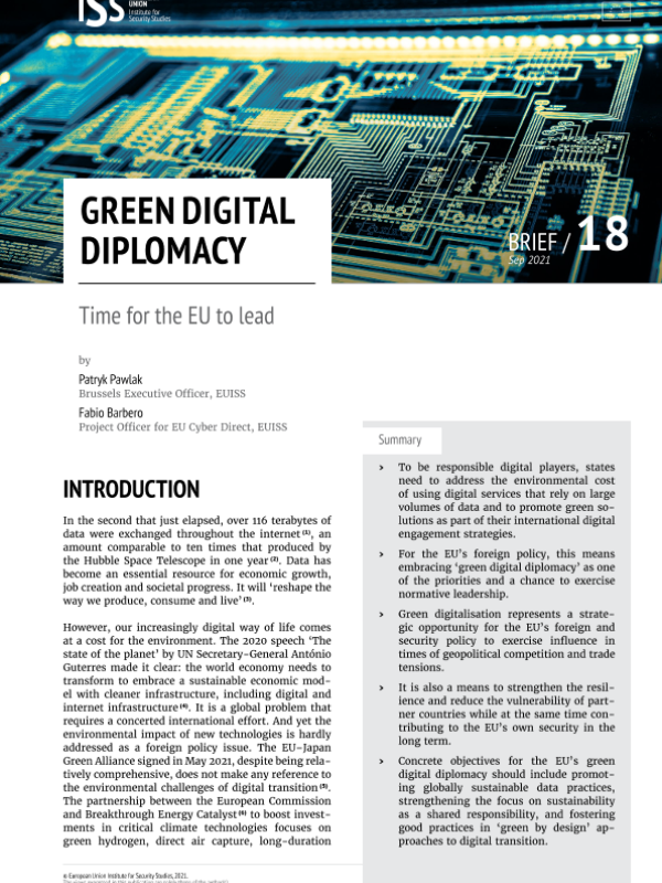 【欧洲安全研究所 (European Union Institute for Security Studies)】【20210918】绿色数字外交:欧盟是时候发挥领导作用了-8页 行业研究