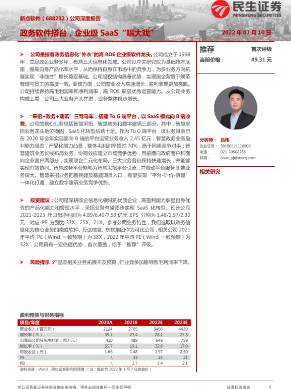 【民生证券】【20220110】新点软件(688232)公司深度报告:政务软件搭台,企业级SaaS“唱大戏”-22页 行业研究
