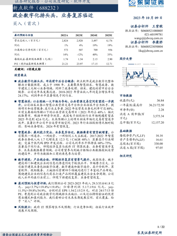 【东吴证券】【20231009】新点软件-688232.SH-政企数字化排头兵,业务复苏临近-22页 行业研究