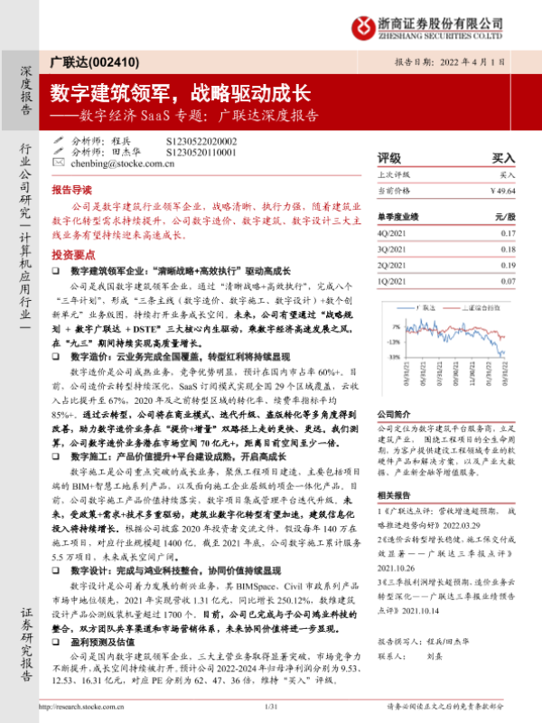 【浙商证券】【20220401】20220401-浙商证券-广联达-002410.SZ-数字经济SaaS专题:广联达深度报告:数字建筑领军,战略驱动成长-31页 行业研究
