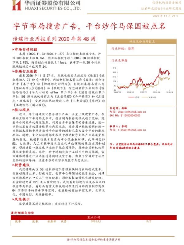 【华西证券】【20201129】20201129-华西证券-传媒行业周报系列2020年第48周:字节布局搜索广告,平台炒作马保国被点名-16页 行业研究