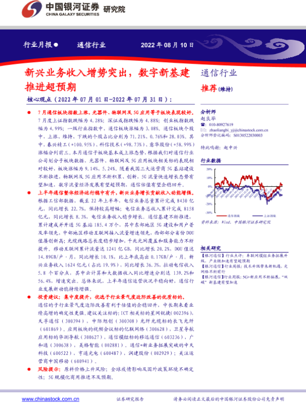 【银河证券】【20220810】20220810-中国银河-通信行业月报:新兴业务收入增势突出,数字新基建推进超预期-20页 行业研究