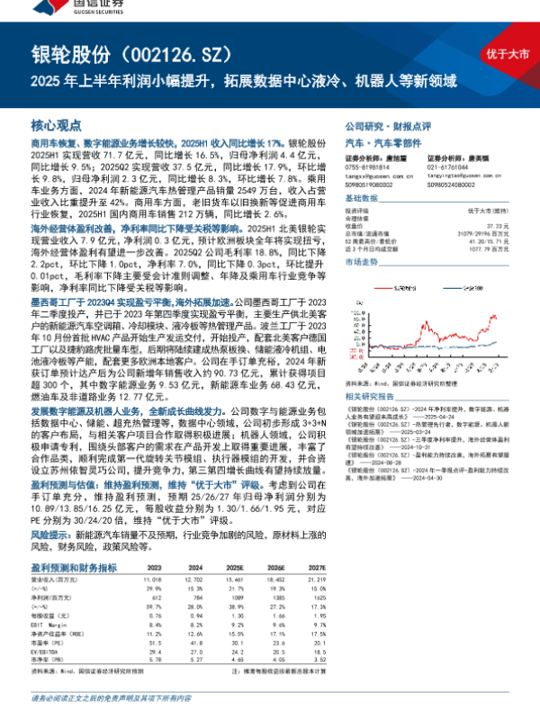 【国信证券】【202509】银轮股份(002126)2025年上半年利润小幅提升,拓展数据中心液冷、机器人等新领域-10页 证券期货研究报告