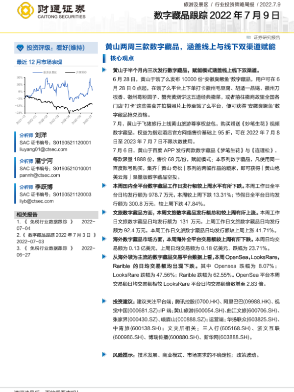 【财通证券】【20220709】数字藏品跟踪:黄山两周三款数字藏品,涵盖线上与线下双渠道赋能-11页 行业研究