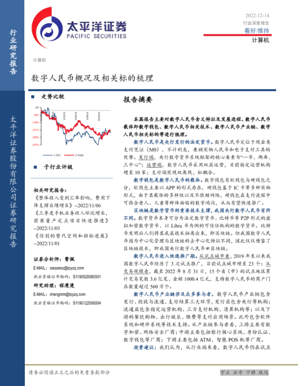 【太平洋证券】【20221214】计算机行业深度报告:数字人民币概况及相关标的梳理-25页 行业研究