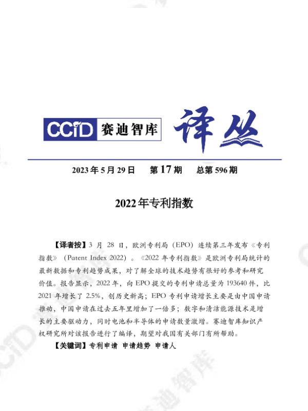 【欧洲专利局(EPO)】【20230529】2022年专利指数报告-20页 行业研究