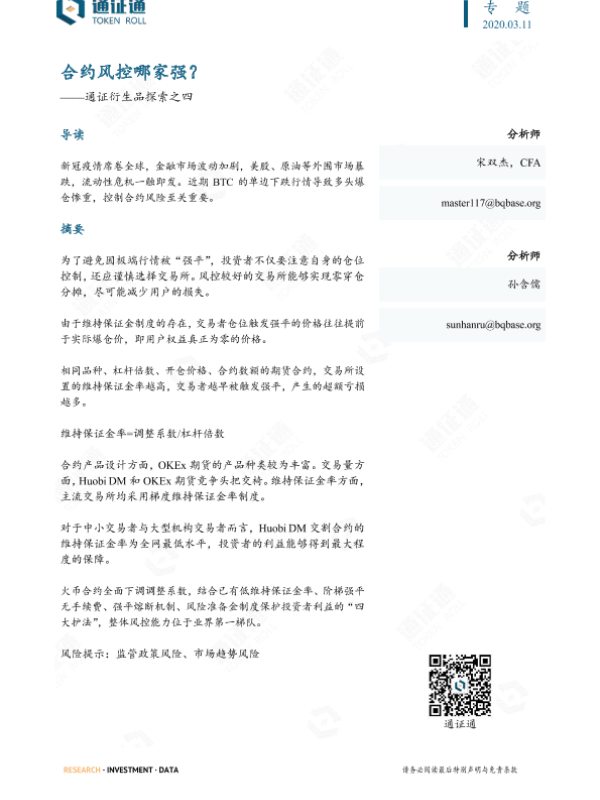 【通证通研究院】【20200311】区块链:通证衍生品探索之四:合约风控哪家强?-10页 行业研究