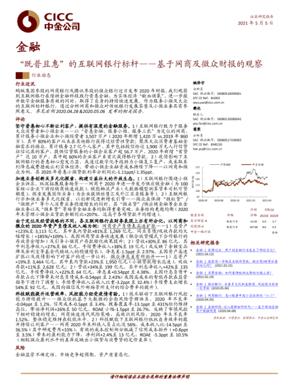 【中金公司】【20210505】基于网商及微众财报的观察:“既普且惠”的互联网银行标杆-9页 行业研究