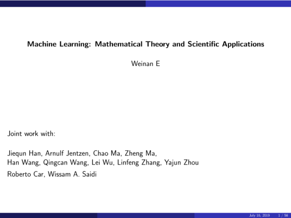 【Weinan E】【2019】Machine Learning Mathematical Theory and Scientific Applications-58页 学术论文
