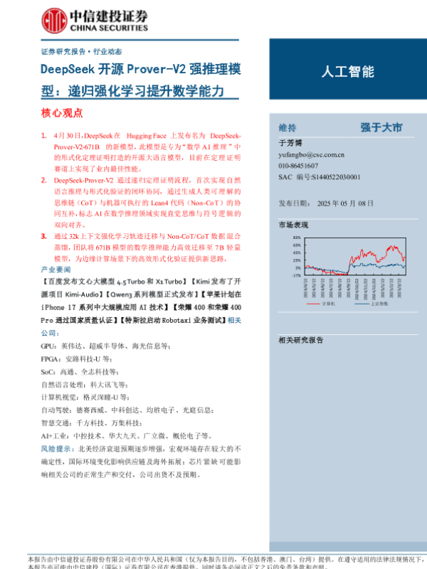 【中信建投证券】【20250508】DeepSeek开源Prover-V2强推理模型:递归强化学习提升数学能力-10页 证券期货研究报告