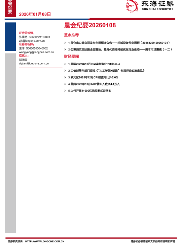 【东海证券】【202601】晨会纪要20260108-11页 会议纪要