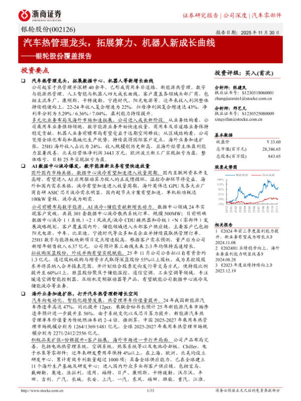 【浙商证券】【202511】汽车热管理龙头,拓展算力、机器人新成长曲线——银轮股份覆盖报告-33页 证券期货研究报告