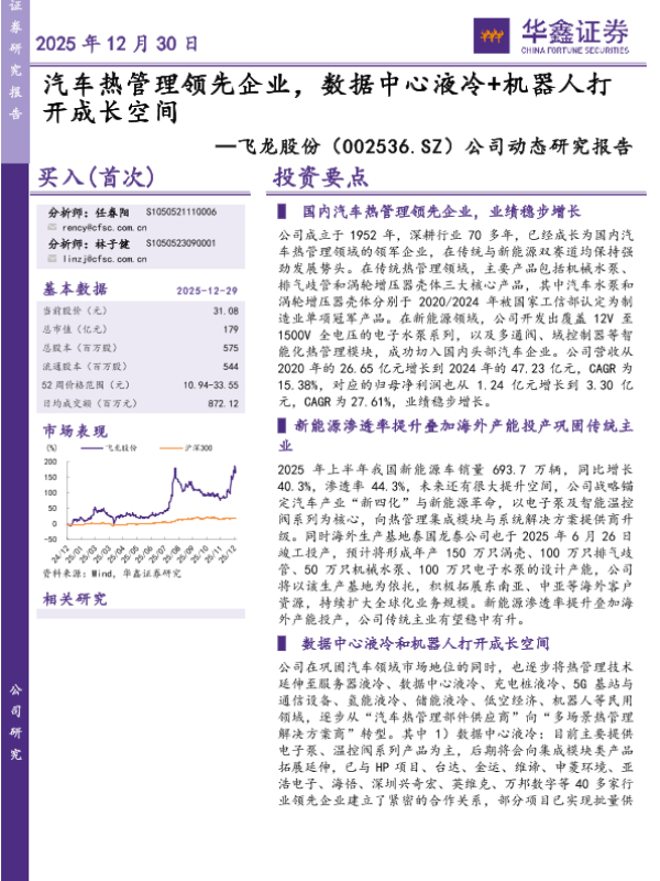 【华福证券】【202508】飞龙股份(002536)汽车水泵领军企业,AIDC领域再出发-33页 证券期货研究报告