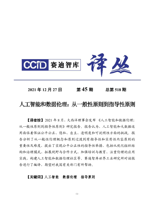 【赛迪智库世界工业研究所】【20211227】人工智能和数据伦理:从一般性指导原则到指导性原则-28页 行业研究