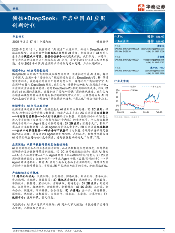 【华泰证券】【20250217】微信+DeepSeek:开启中国AI应用创新时代-13页 行业研究
