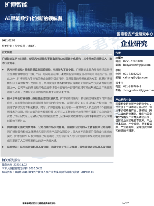 【国泰君安证券】【20210209】扩博智能 AI赋能数字化创新的领航者-17页 行业研究