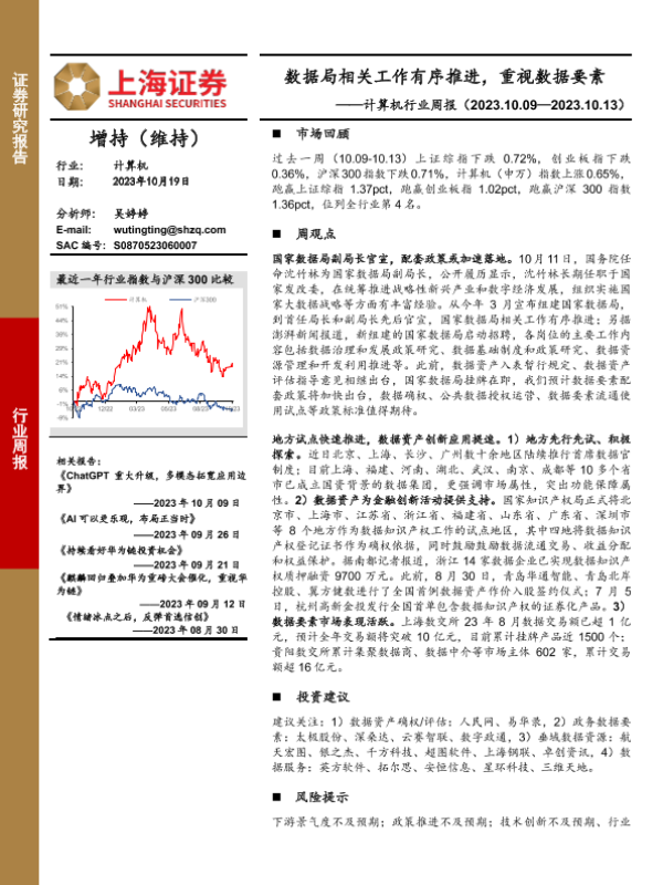 【上海证券】【20231019】计算机行业周报:数据局相关工作有序推进,重视数据要素-16页 行业研究
