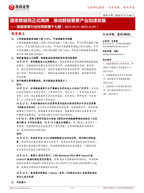 【浙商证券】【20231104】国家数据局正式揭牌,推动数据要素产业加速发展-11页 行业研究