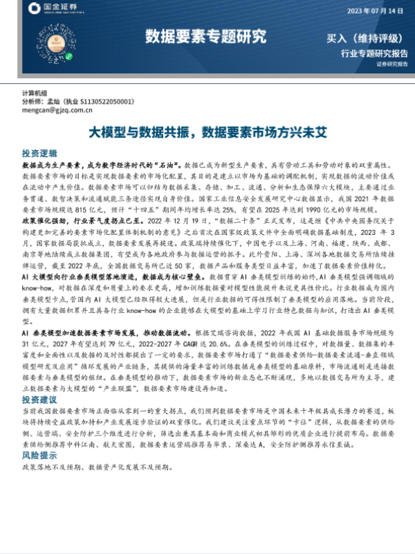 【国金证券】【20230714】数据要素专题研究报告:大模型与数据共振,数据要素市场方兴未艾-33页 行业研究