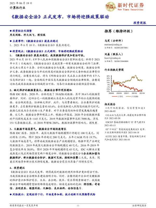 【新时代证券】【20210619】计算机行业投资周报:《数据安全法》正式发布,市场将迎强政策驱动-25页 行业研究