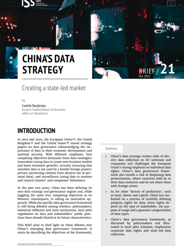 【European Union Institute for Security Studies】【20211021】CHINA'S DATA STRATEGY Creating a state-led market-8页 行业研究