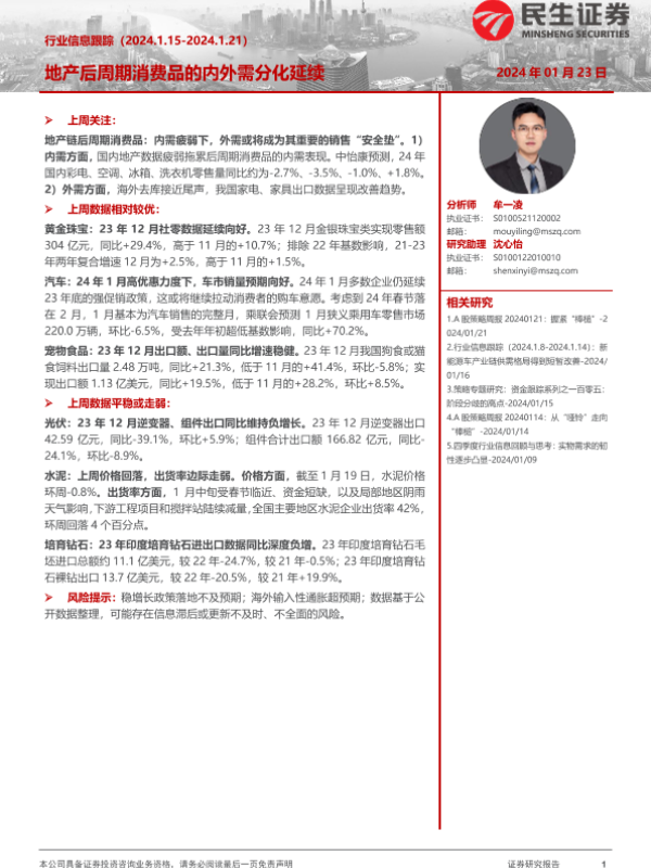 【民生证券】【20240123】行业信息跟踪:地产后周期消费品的内外需分化延续-26页 行业研究